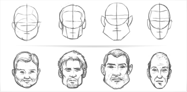tipi di testa, attraverso l'uso di forme semplici, come appunto cerchi,